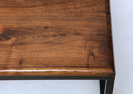 18th C. Italian Thick Walnut Coffee Table, Detailed Edge & Solid Blackened Base