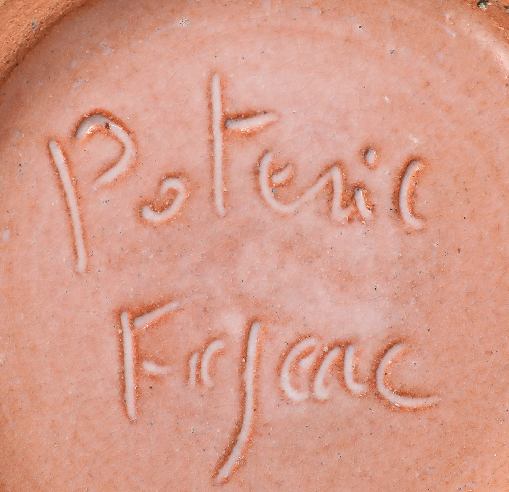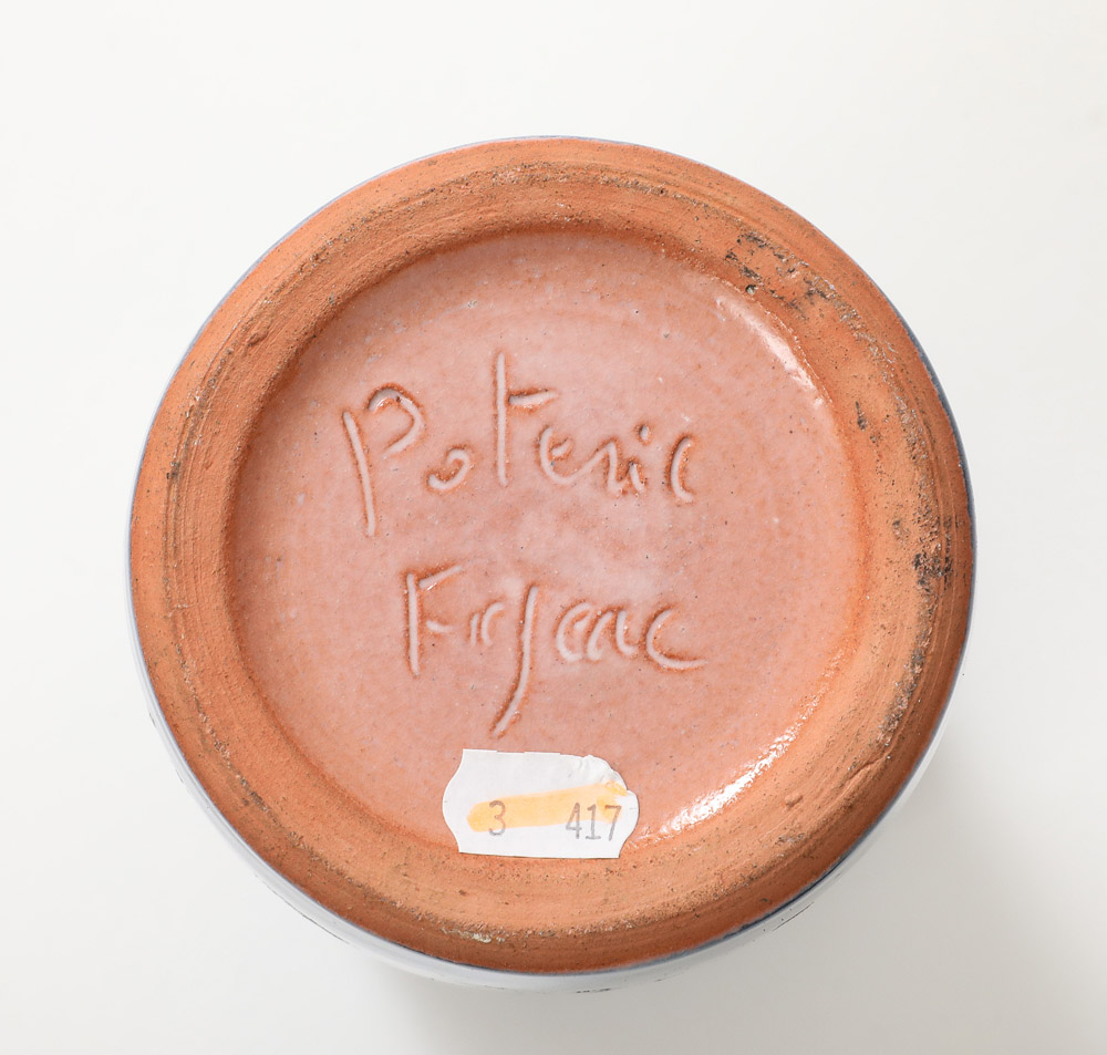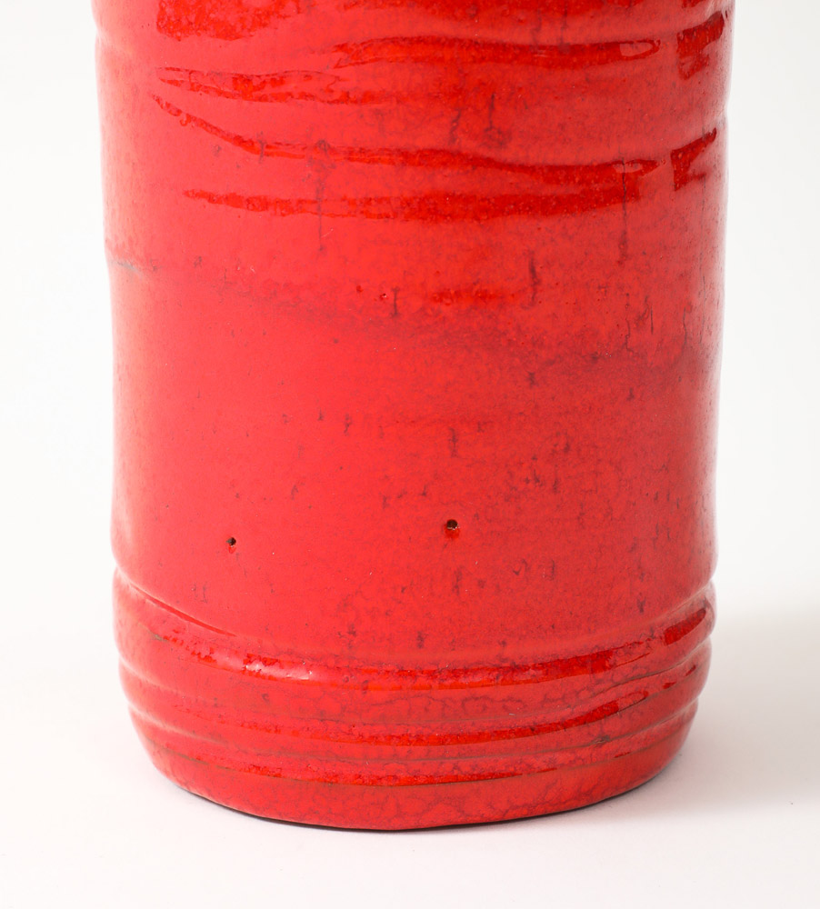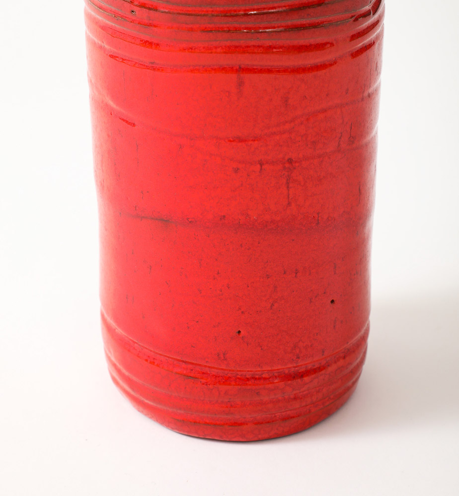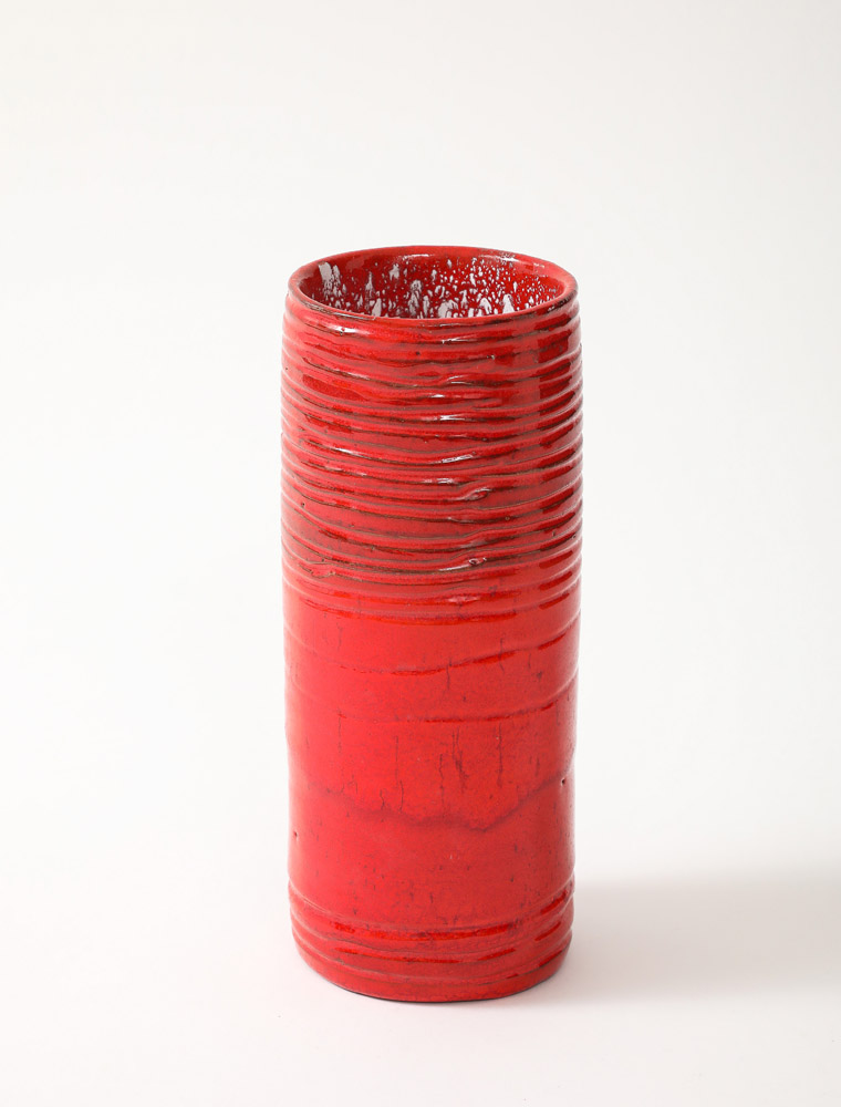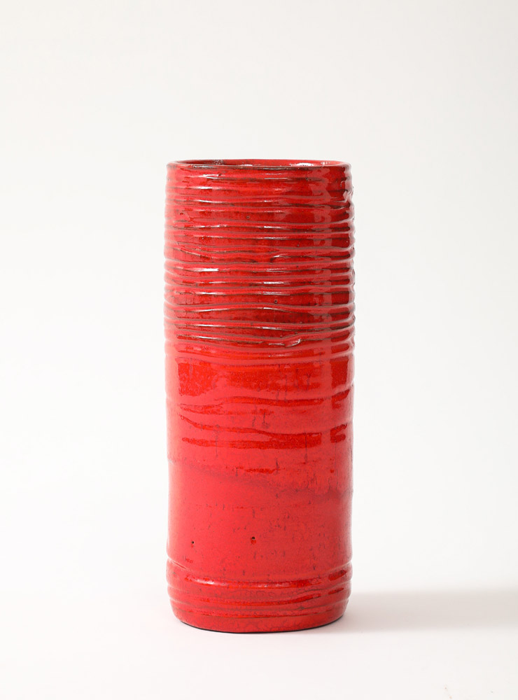 Blood Red Enamel Glaze Ceramic Rousseau Vase with Striated Decoration, France. c. 1950, signed: ‘BL’