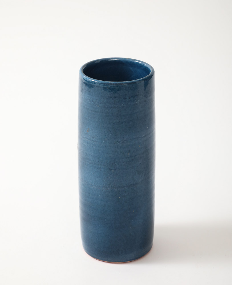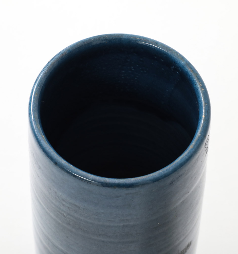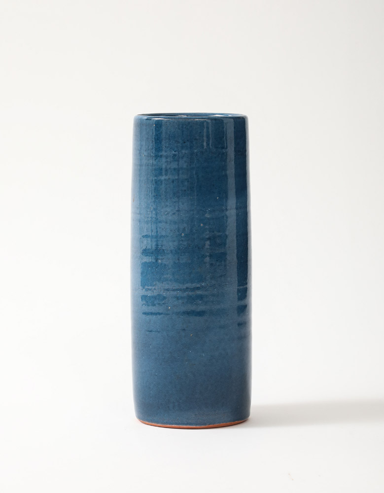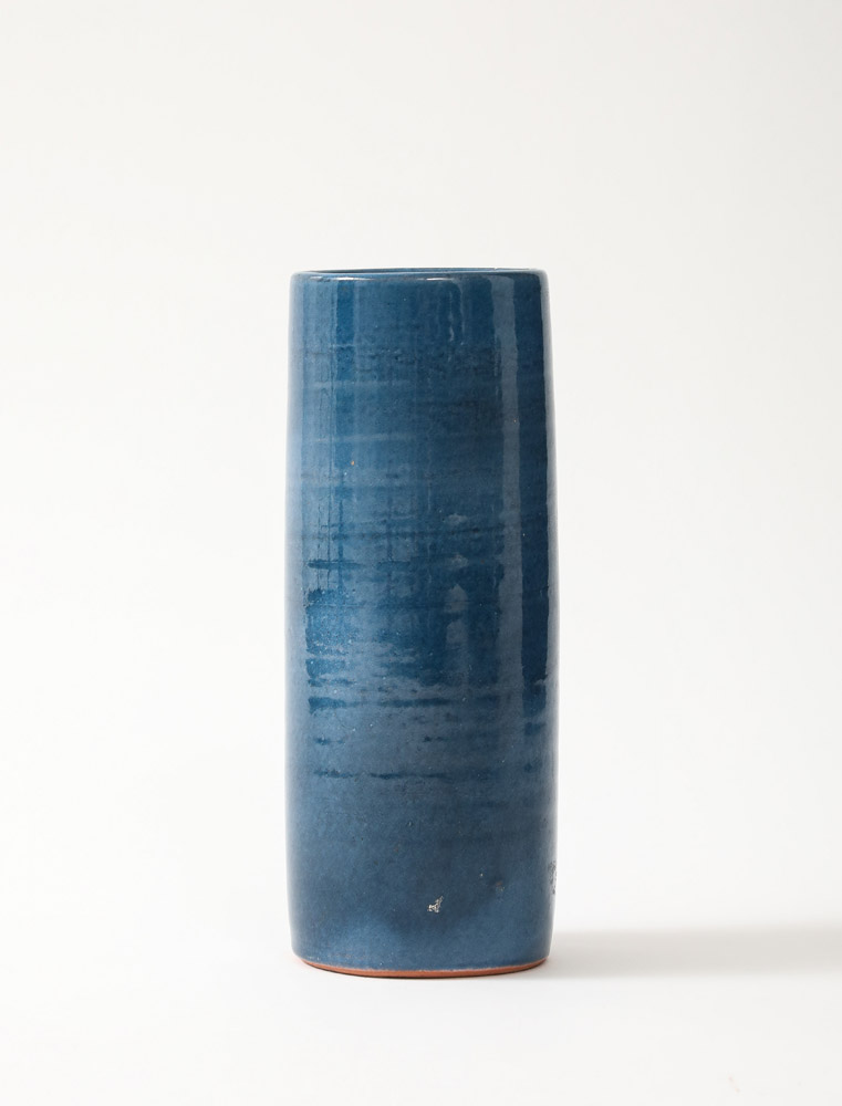 Blue Glazed Ceramic Rouleau Vase, France, c. 1960’s, Signed: ‘Poterie Figere’
