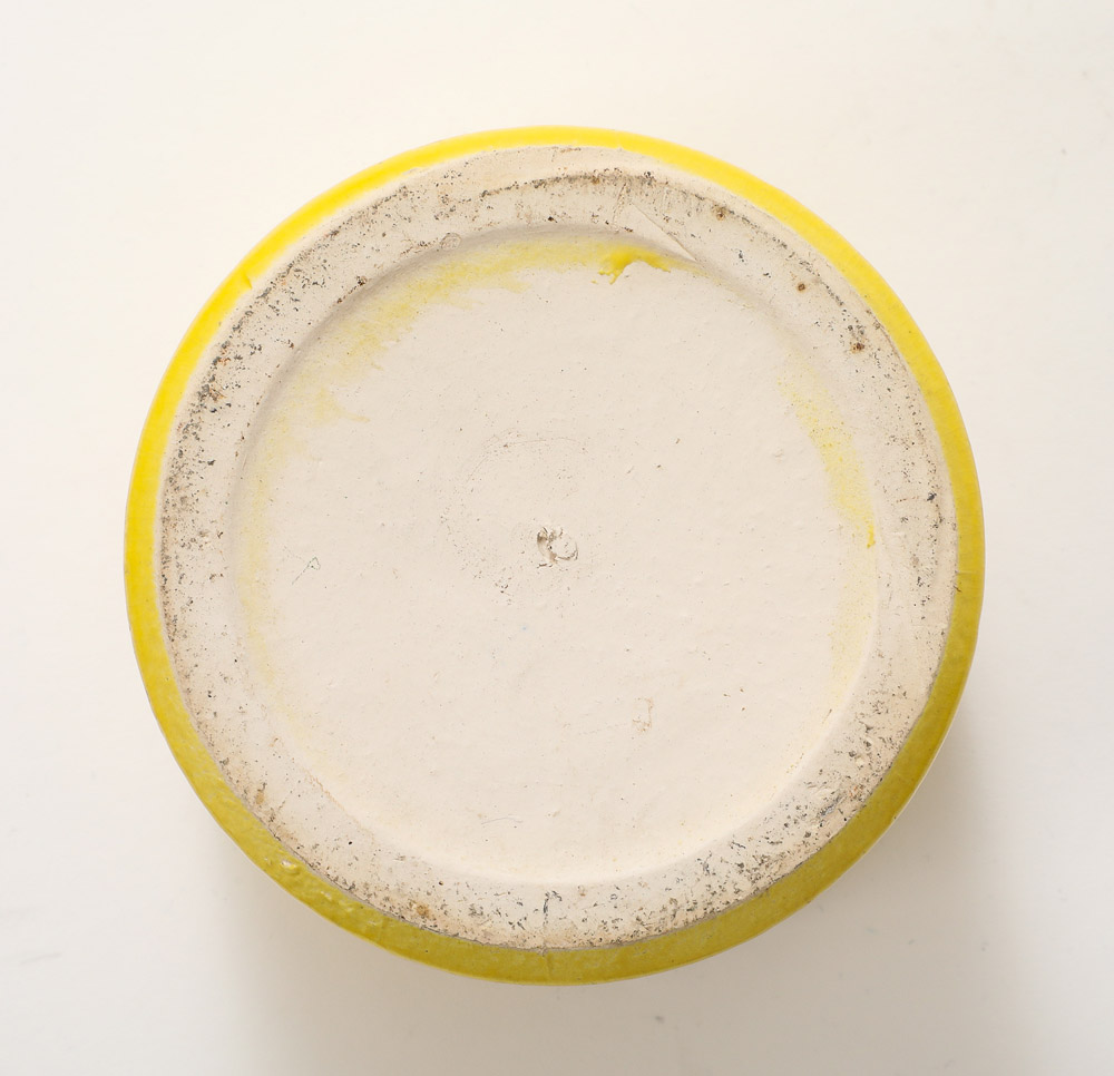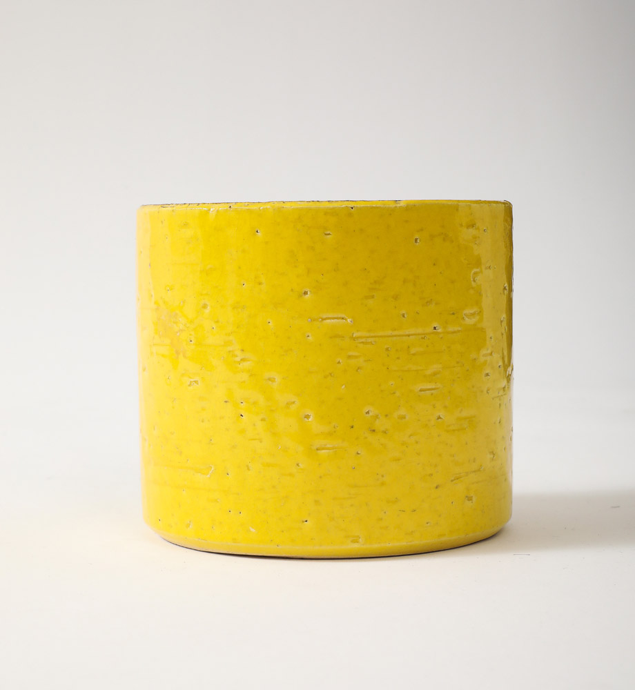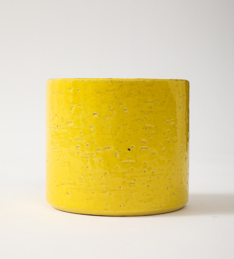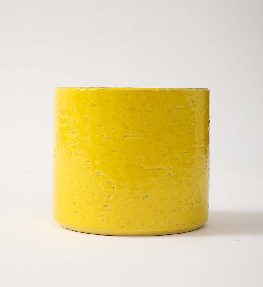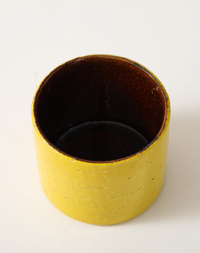 Ceramic Rouleau Vase with Yellow exterior glaze, black Brown/ interior, France, 1950’s