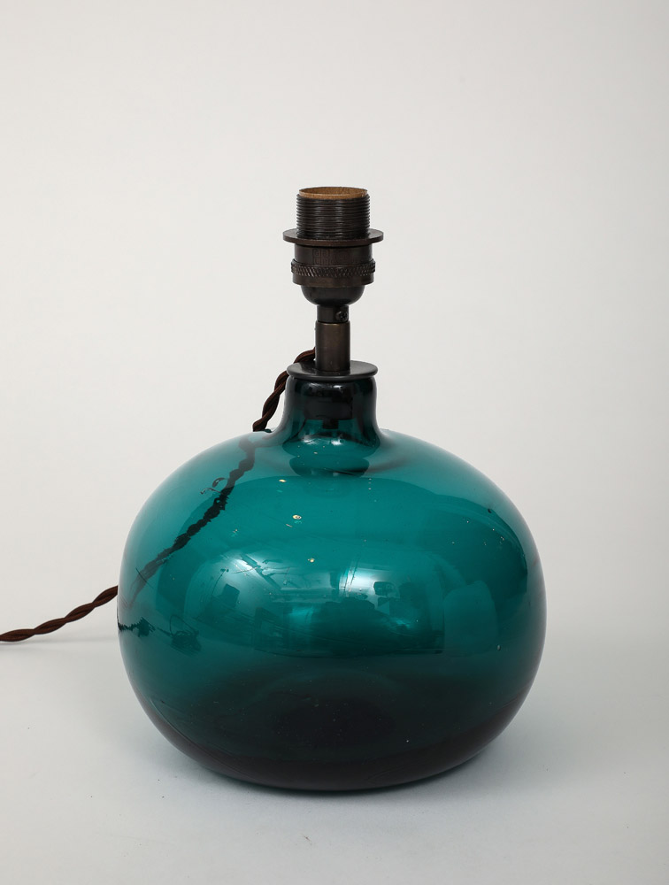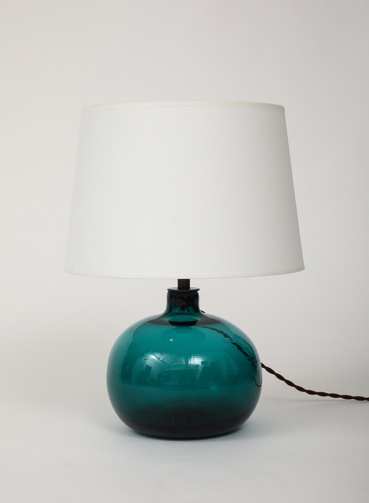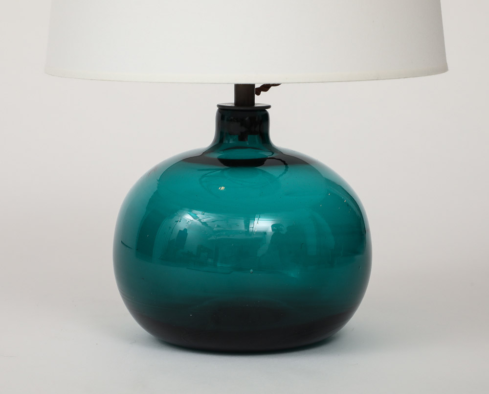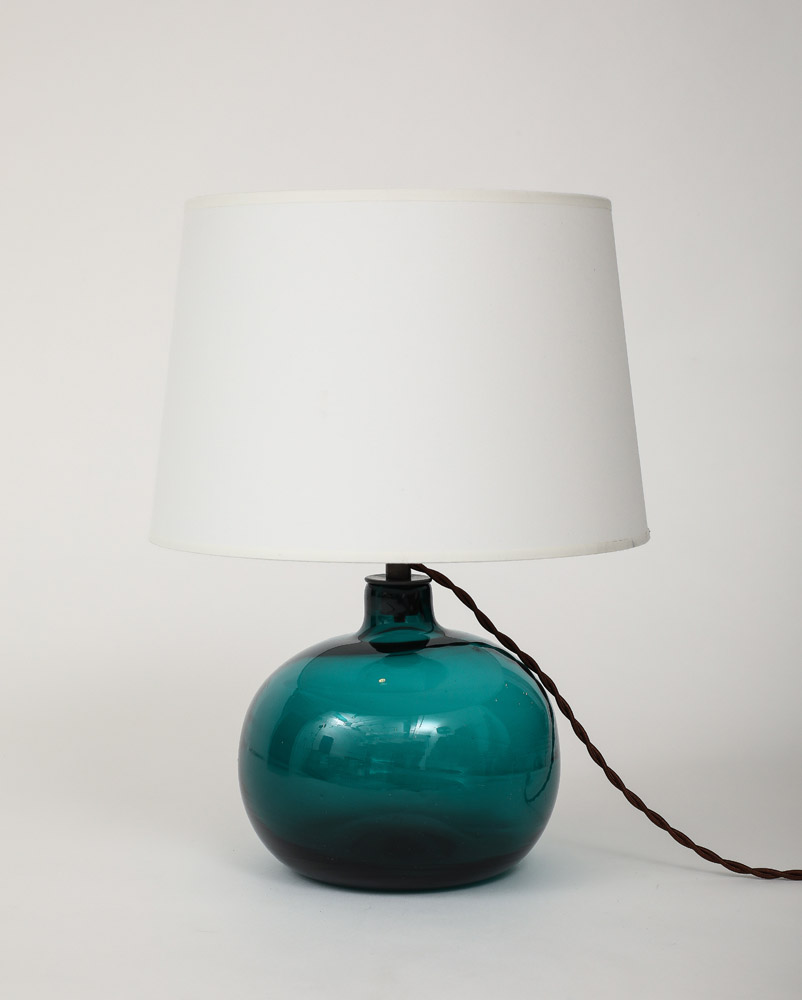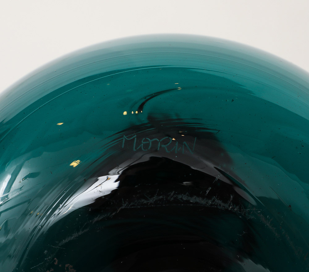 Claude Morin Green Blown Glass Lamp, France, 1970, signed, Custom Made Shade