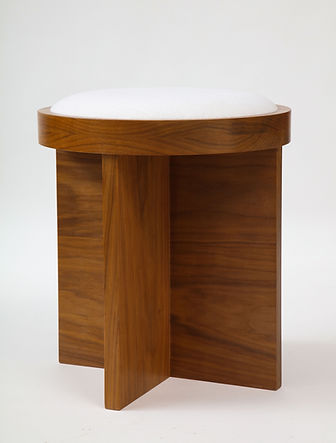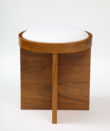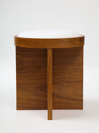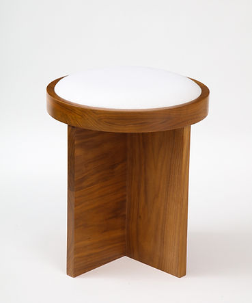 Custom Made to Order Solid Walnut Stool with Linen Inset Cushioned Top