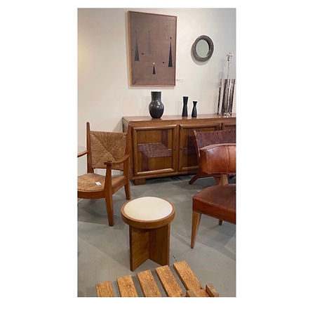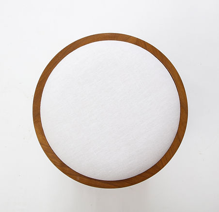 Custom made to order solid walnut stool (or side table) with inset linen cushioned top (COM) in the French 40’s style.