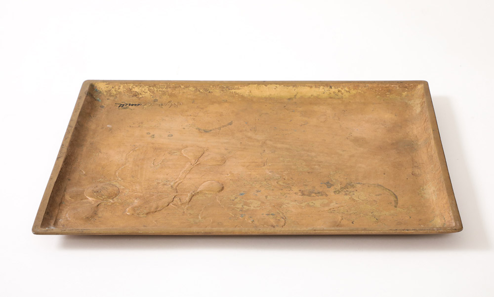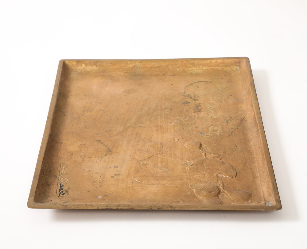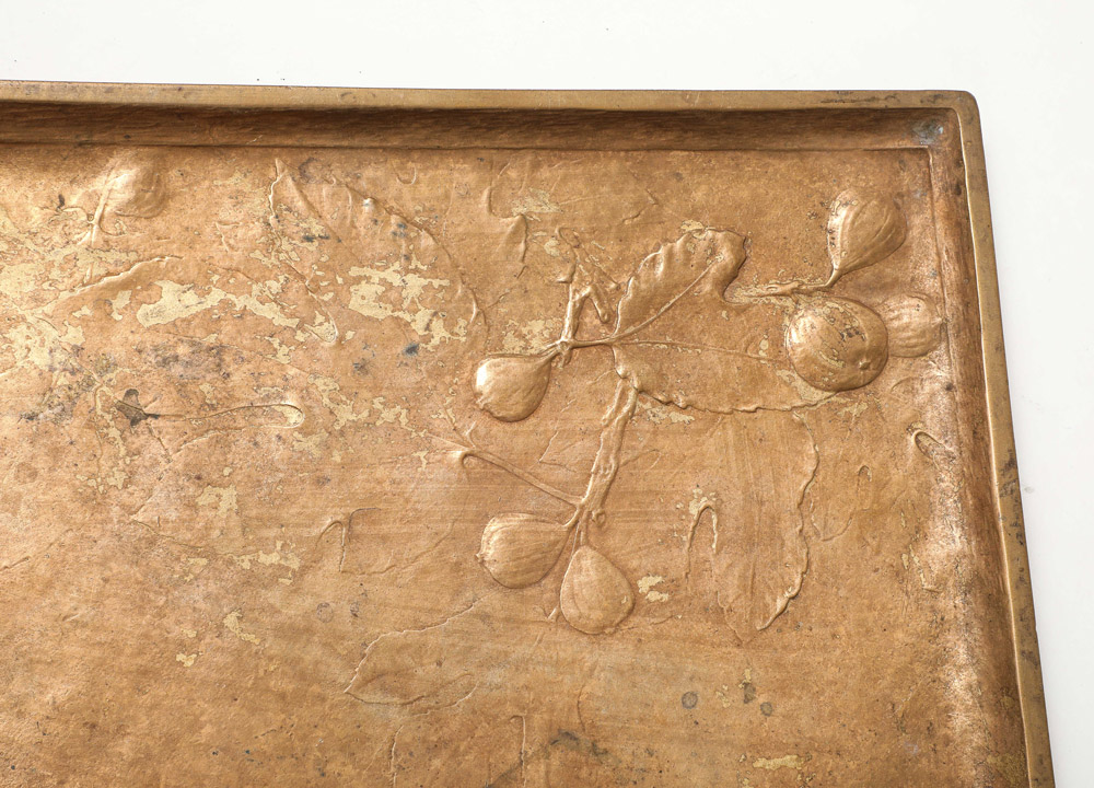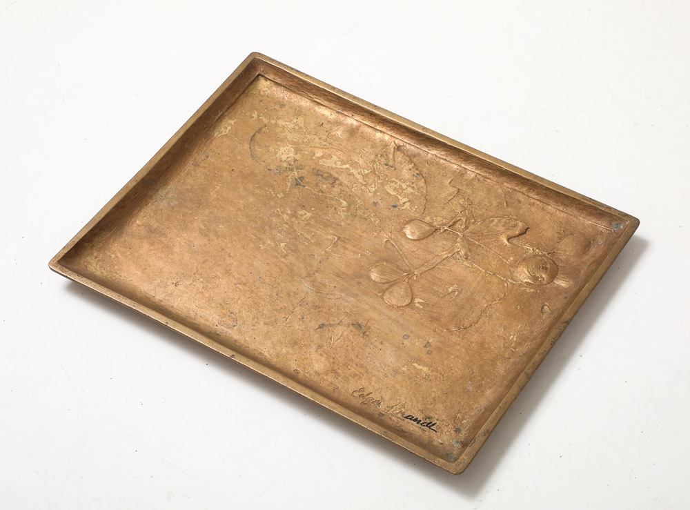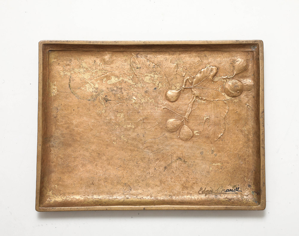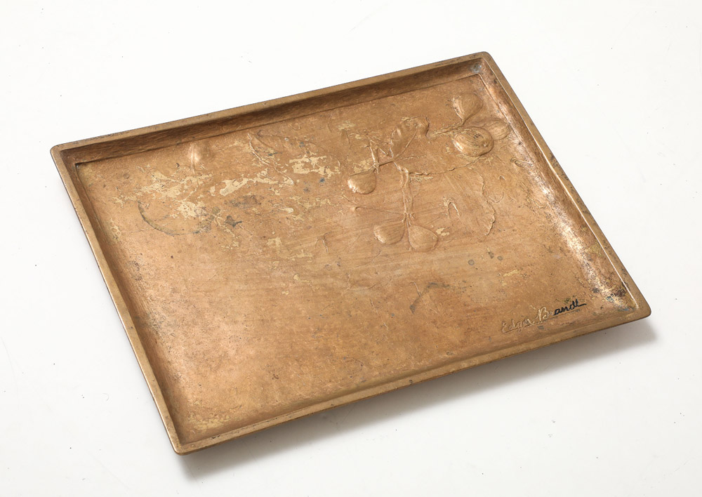 Edgar Brandt Art Nouveau Bronze Ormolu Tray, Naturalist Low Relief Decoration, France, signed: ‘Edgar Brandt’