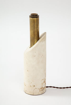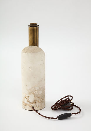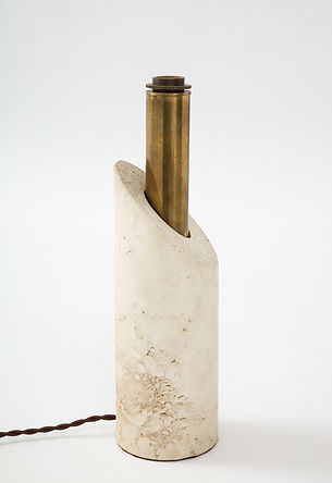 European Travertine & Brass Lip Stick Lamp