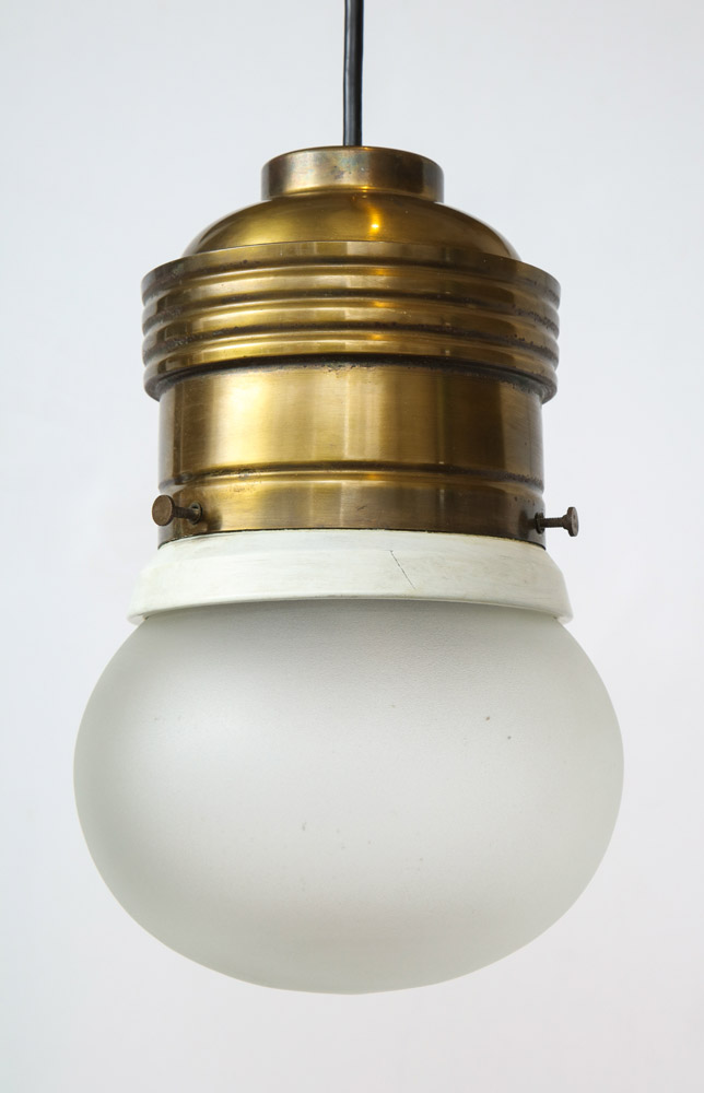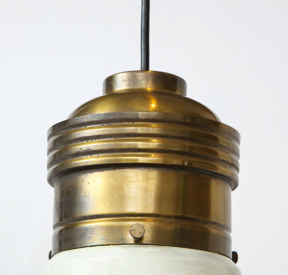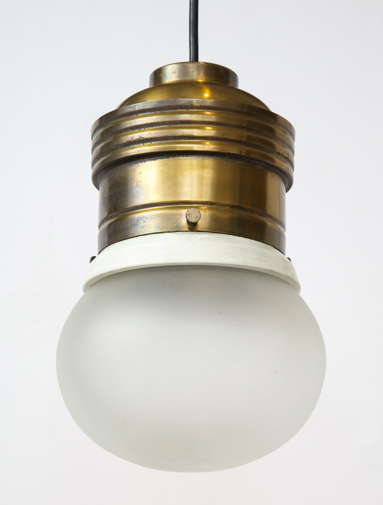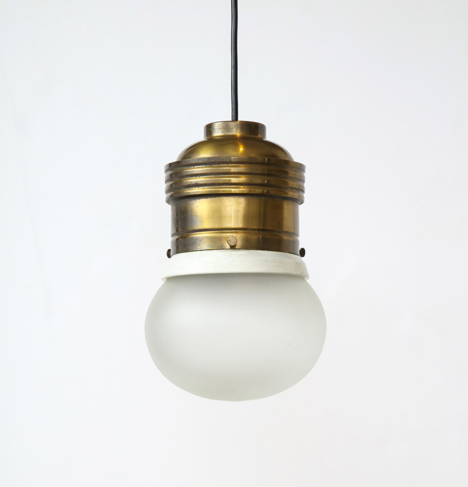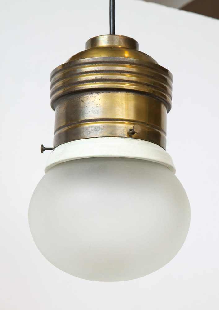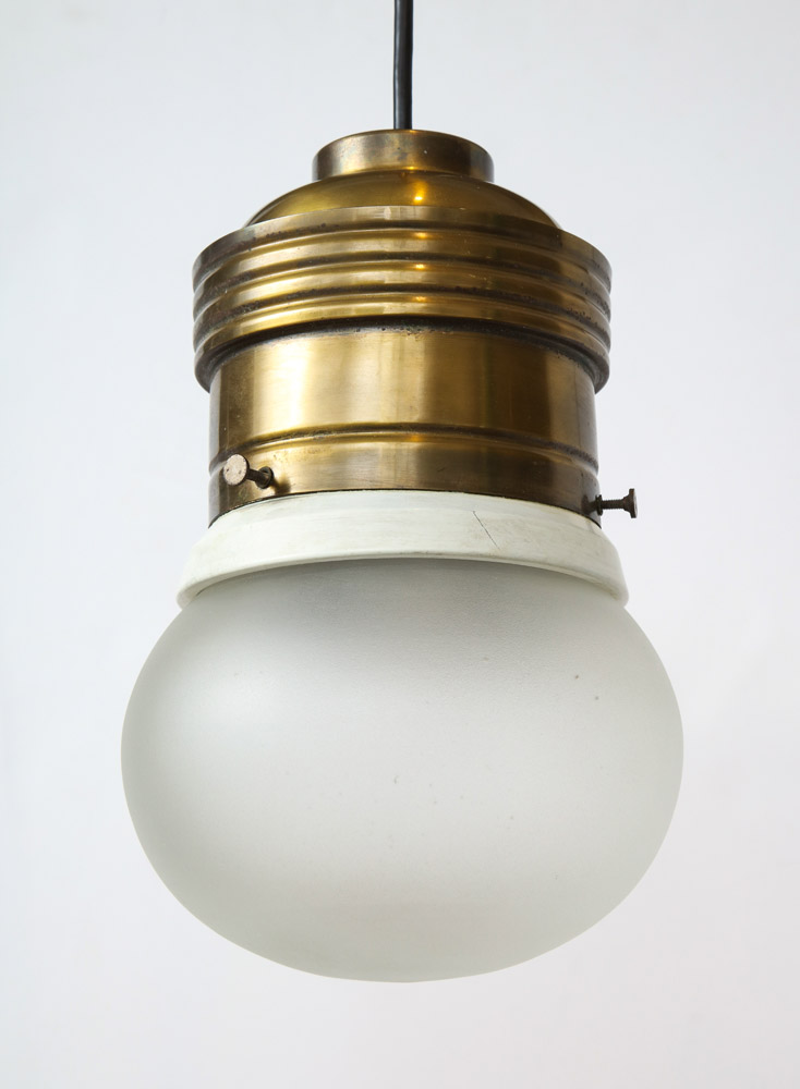 Fontana Arte Pendant Light, Model 2406, Sandblasted Glass, Brass