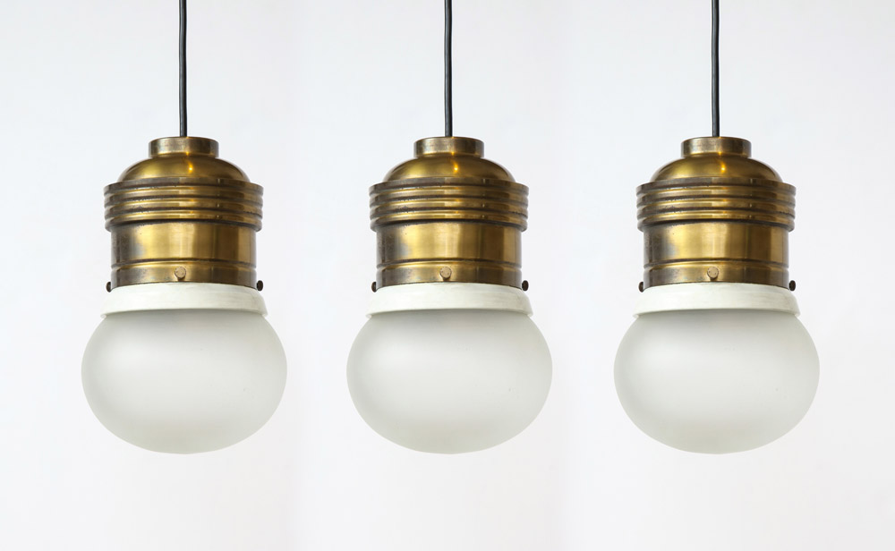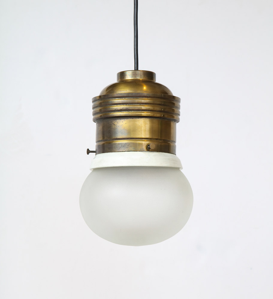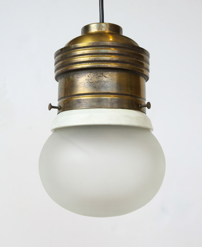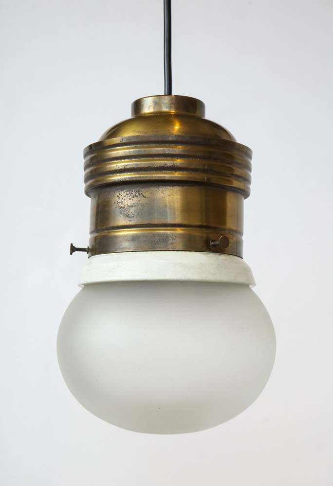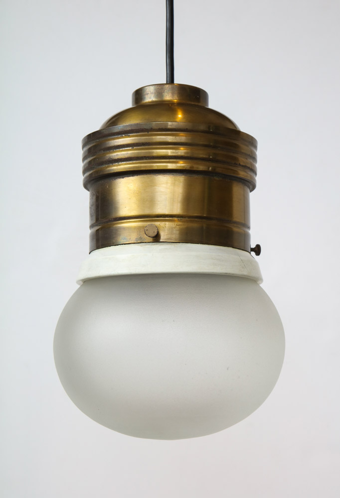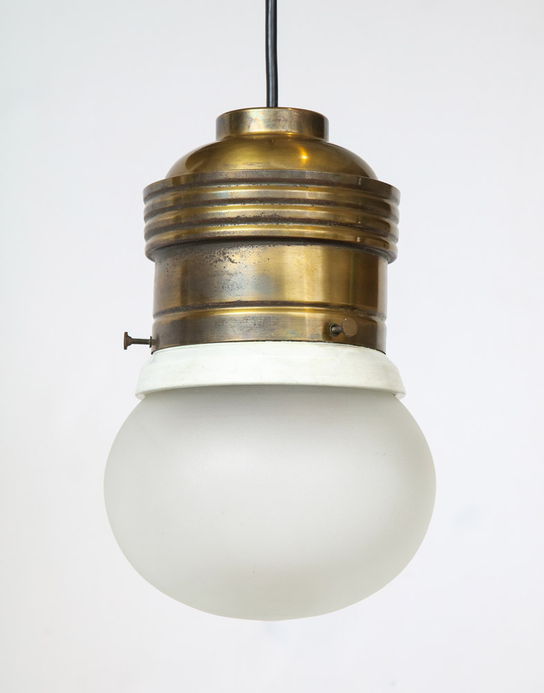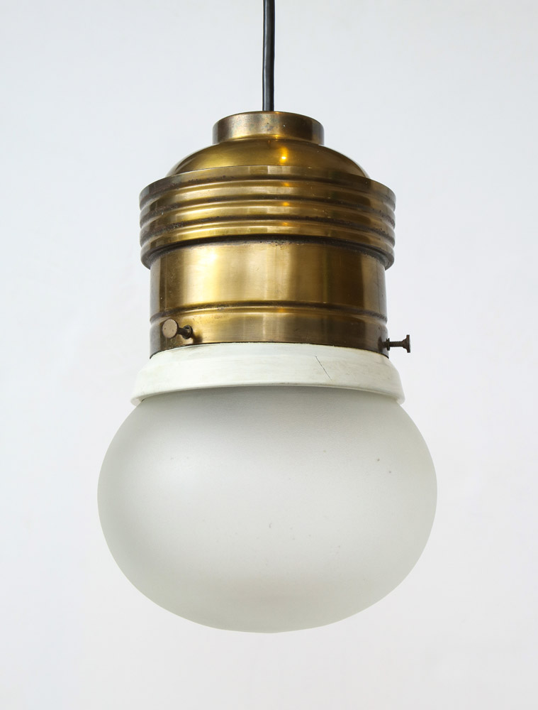 Fontana Arte Pendant Light, Model 2406, Sandblasted Glass, Brass