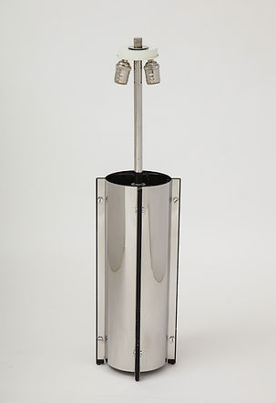 Gaetano Scolari Chrome Steel & Blackened Metal Lamp w/ Screw Studded Construction