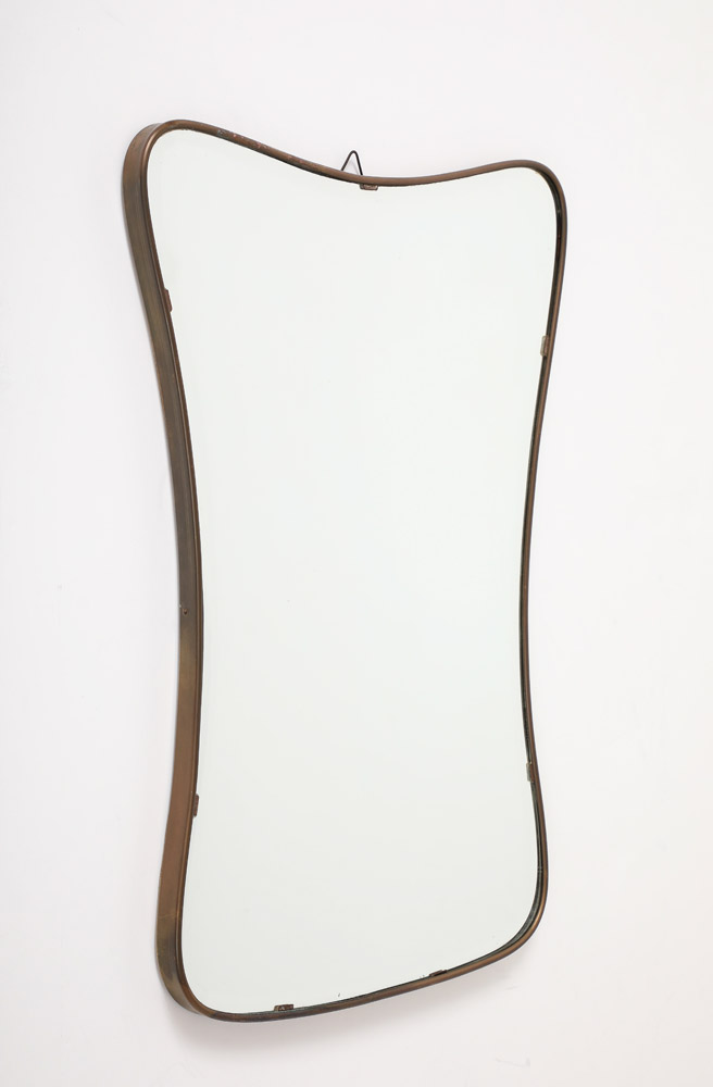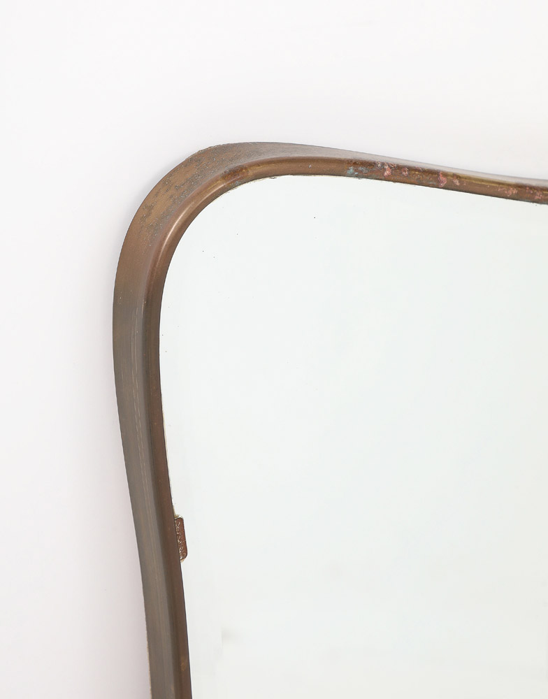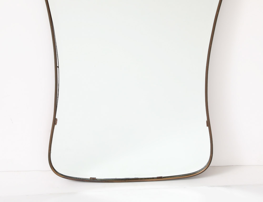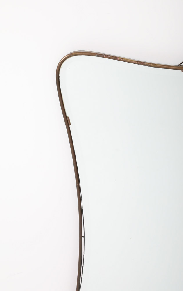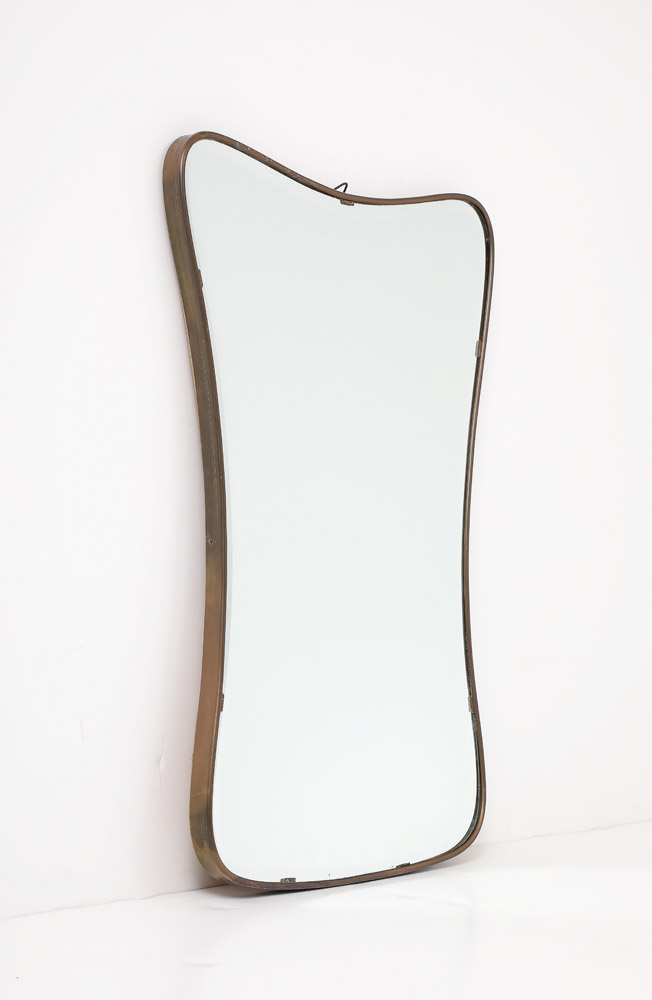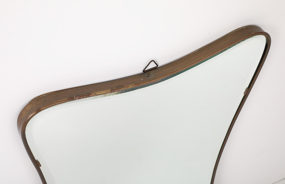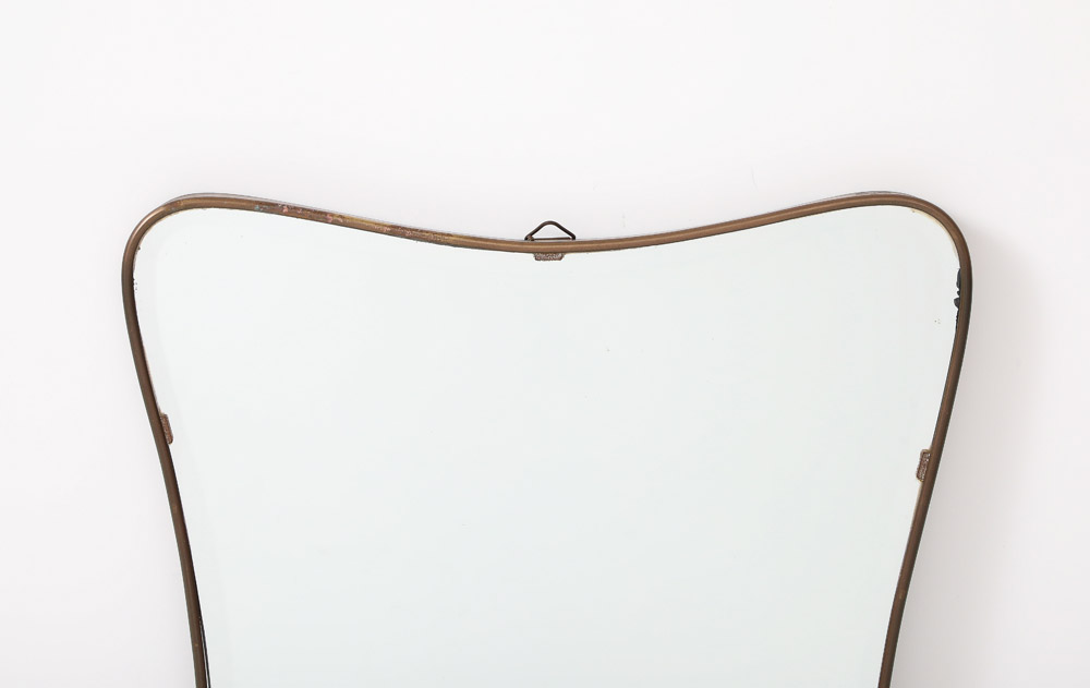 Gio Ponti style Period Mid Century Modern Brass Mirror, Bevelled, Italy, 1950’s