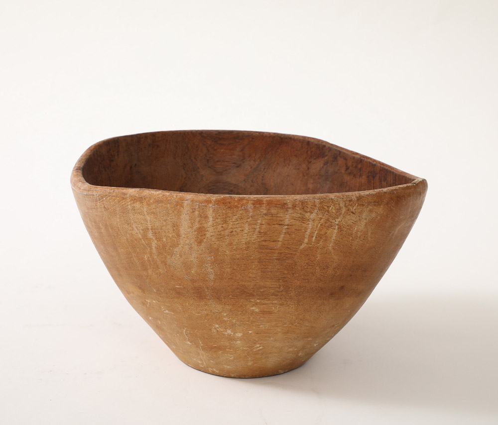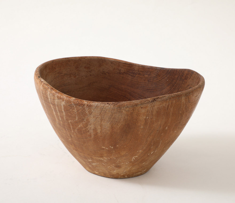 Hand Carved Elm Bowl, Primitive Style, France, Antique, 1900s, 11.75″