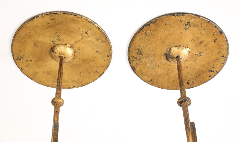 Henri Pouenat Pair Iron Occasional Tables, Gold Leaf, Mod. Dani, France, 1980