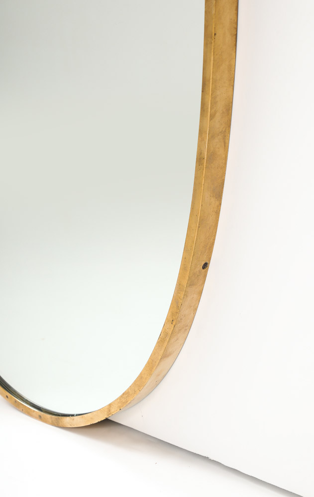 Italian Modernist Mirror with Brass Frame, Italy, c. 1950