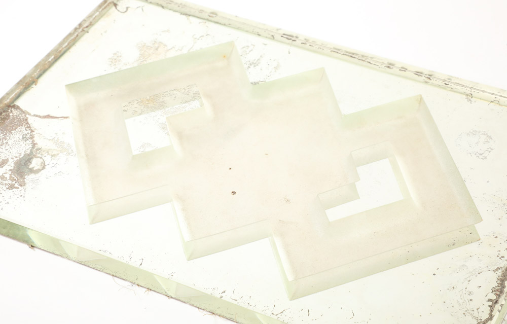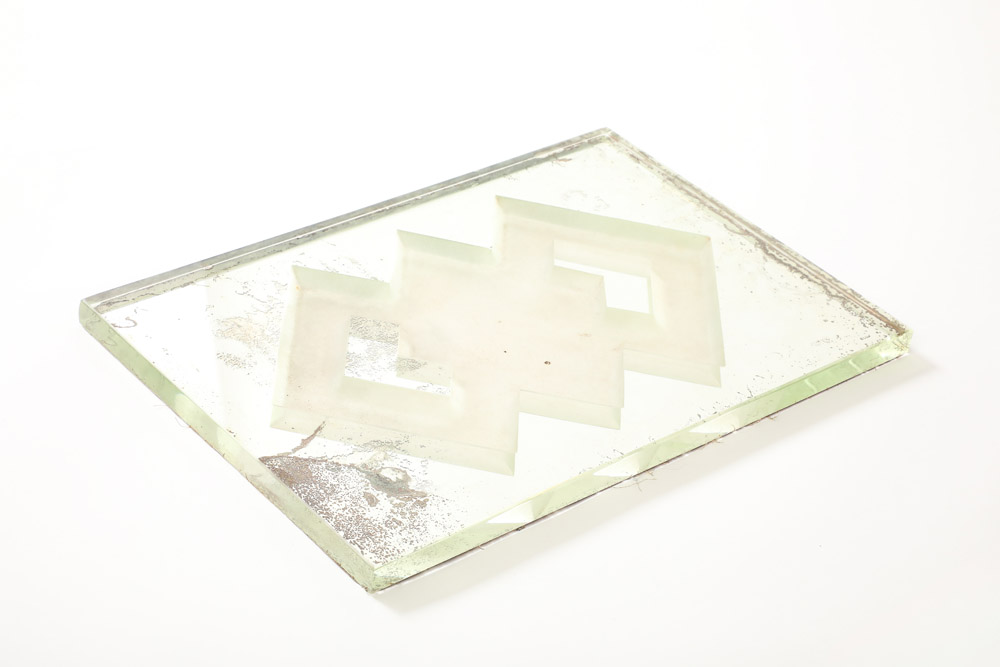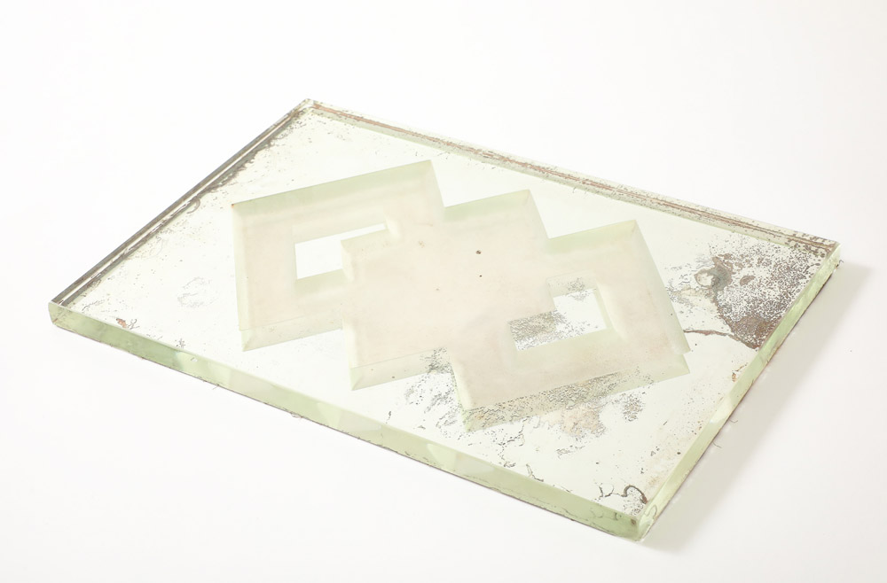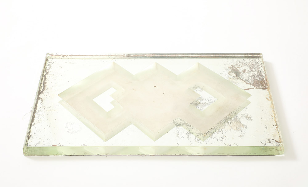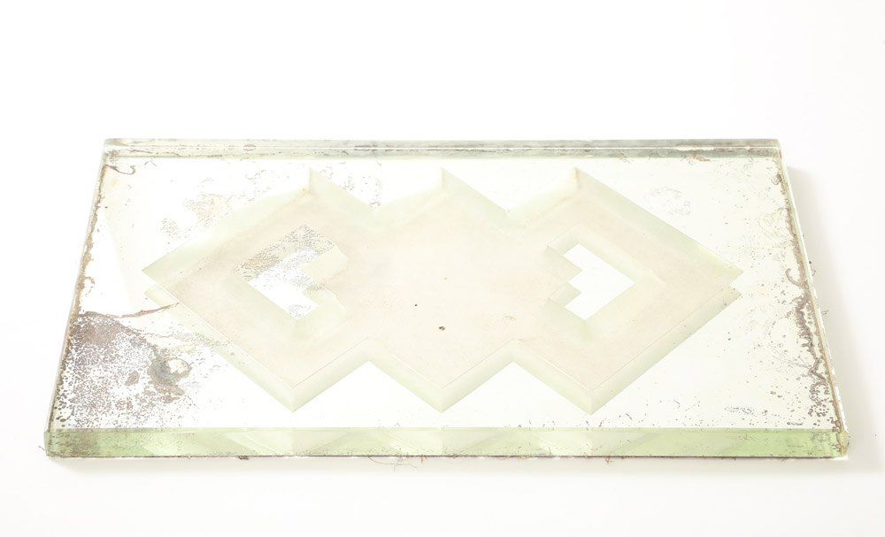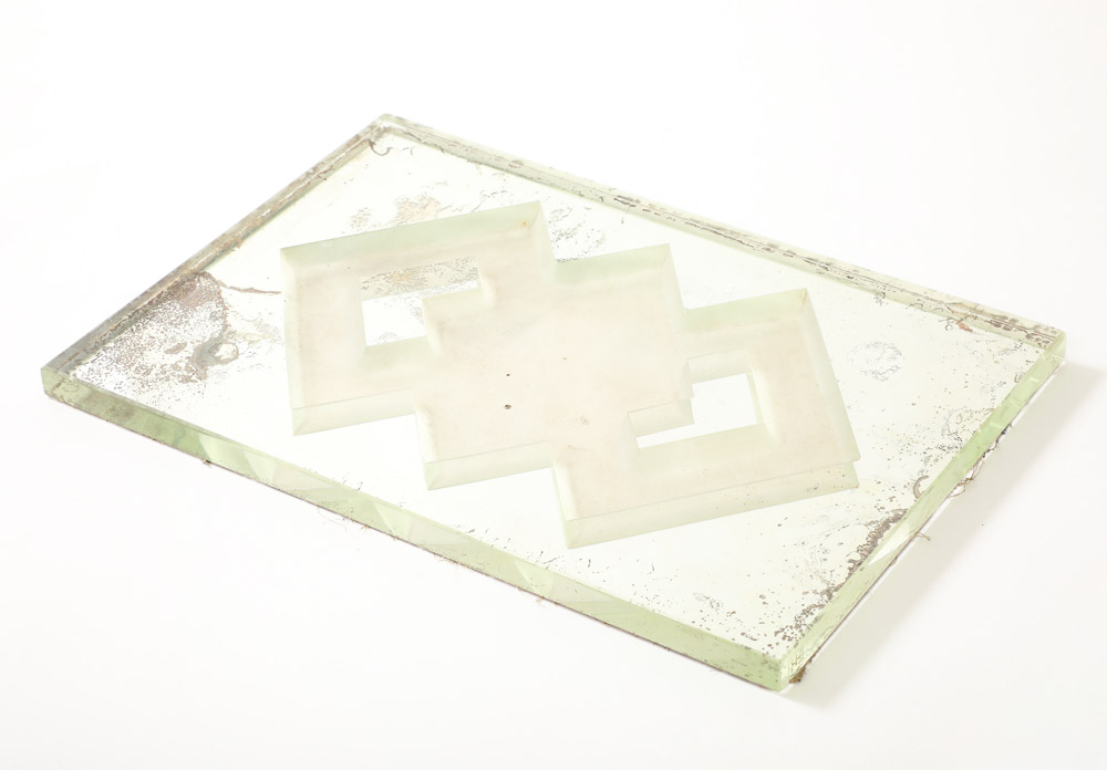 Cast Glass Mirrored Tray with Geometric relief Design, France, c 1930’s, signed: ‘JL’
