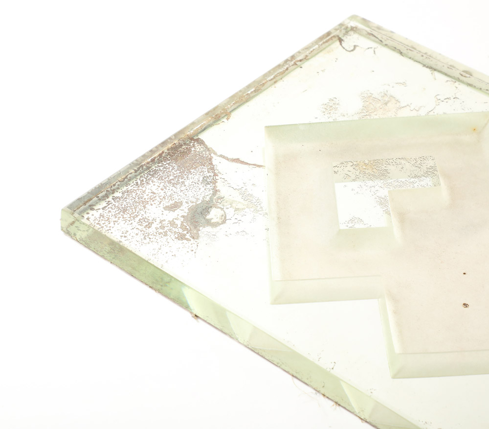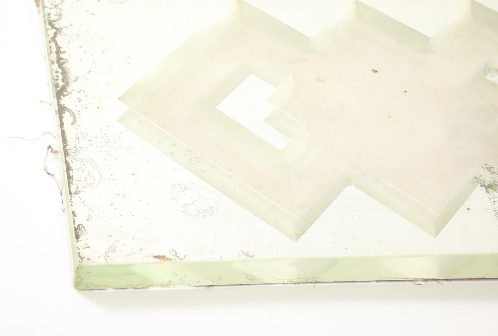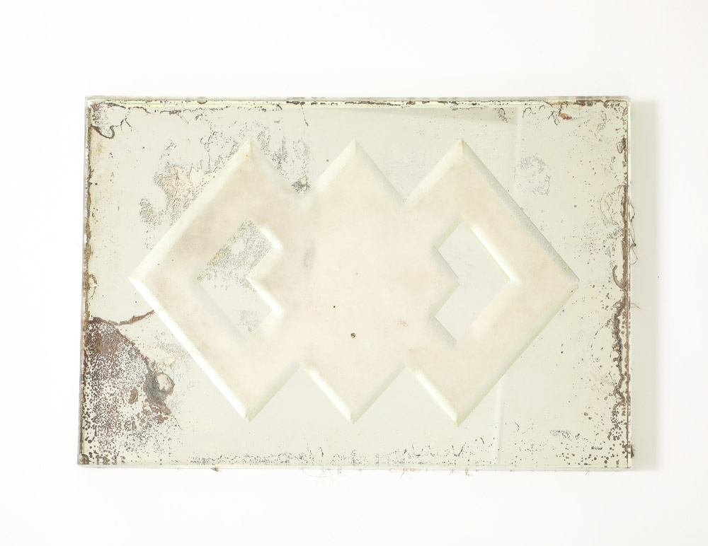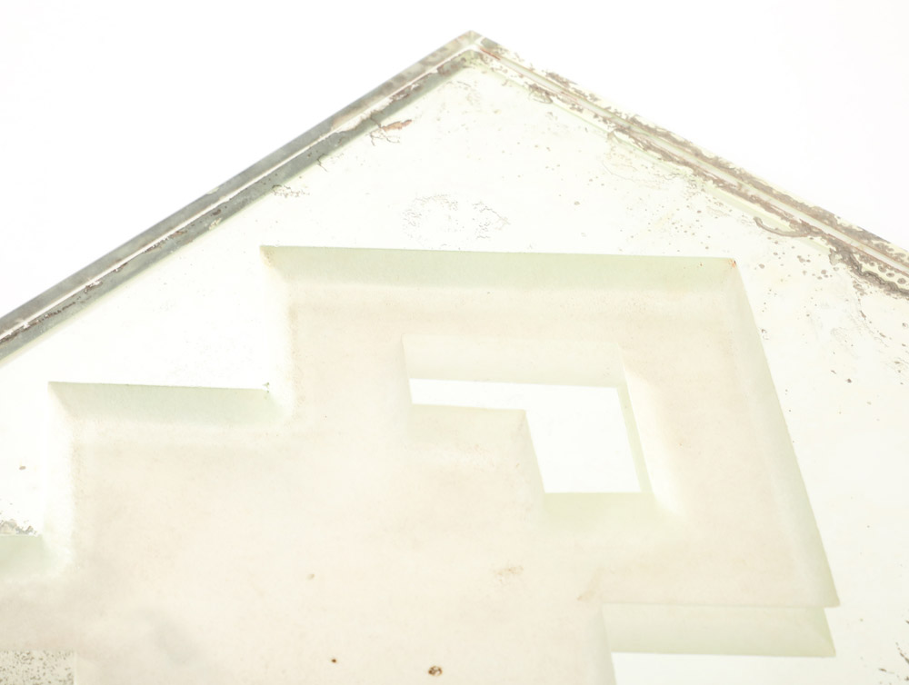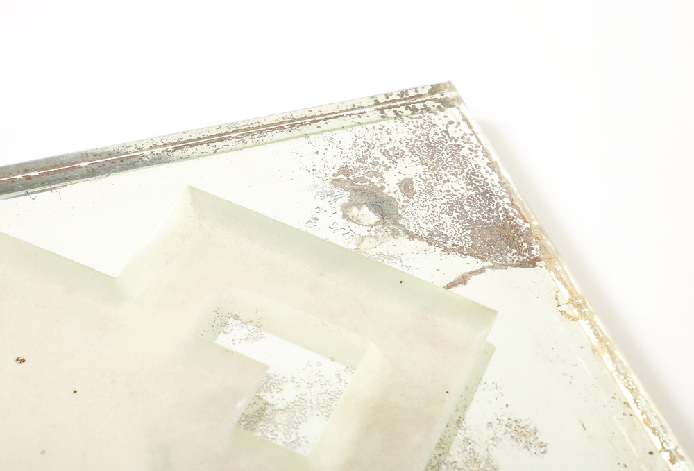 Cast Glass Mirrored Tray with Geometric relief Design, France, c 1930’s, signed: ‘JL’