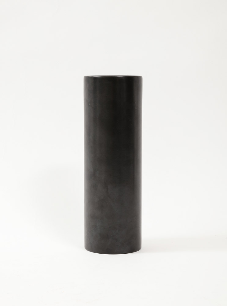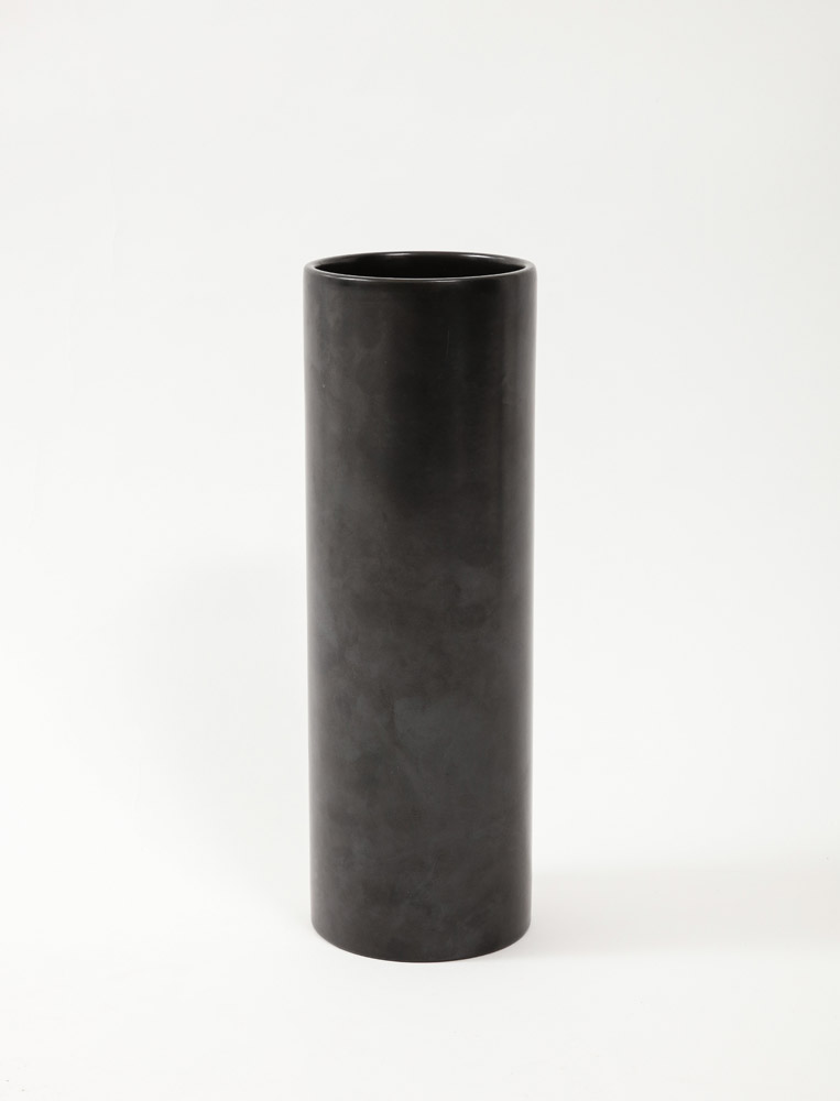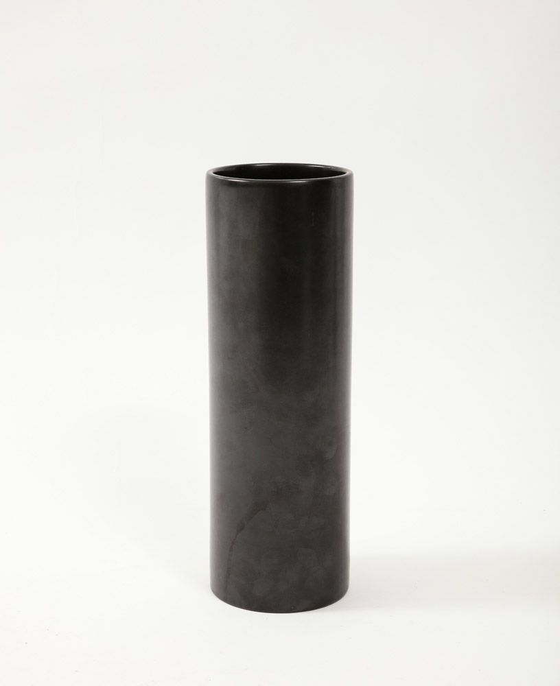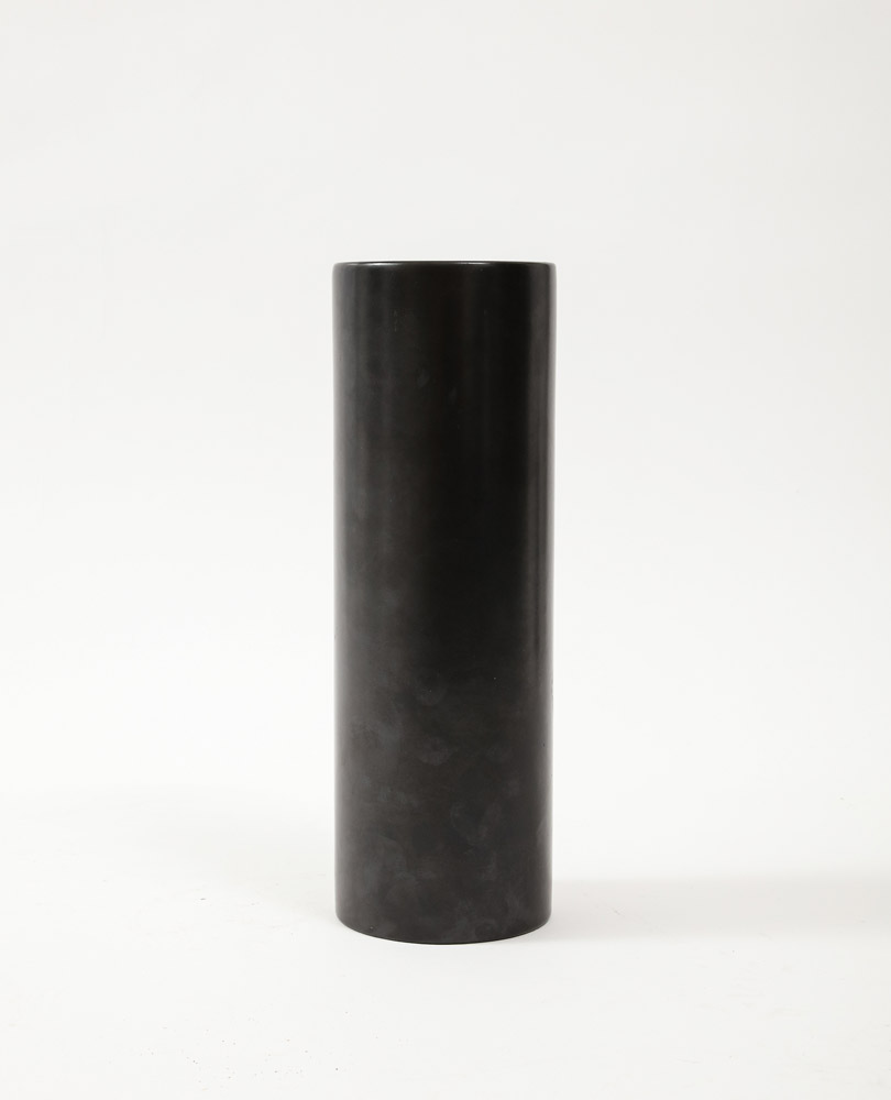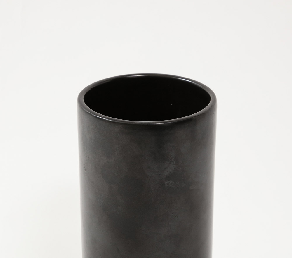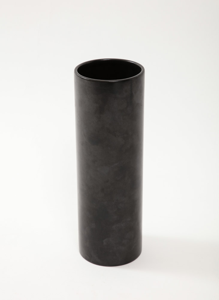 Large Georges Jouve Style Black Matte Cylinder Vase, France, c. 1950’s