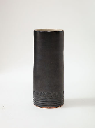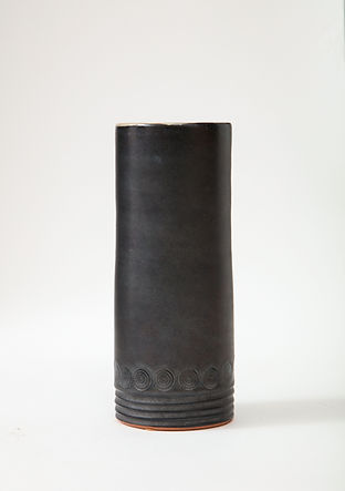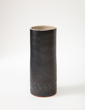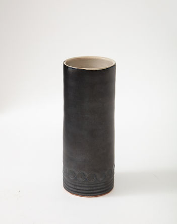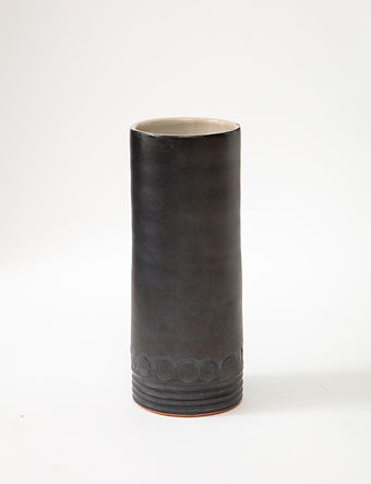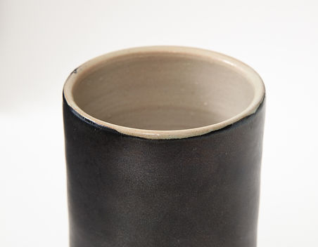 Matte Black Mid-Century Vase with White interior