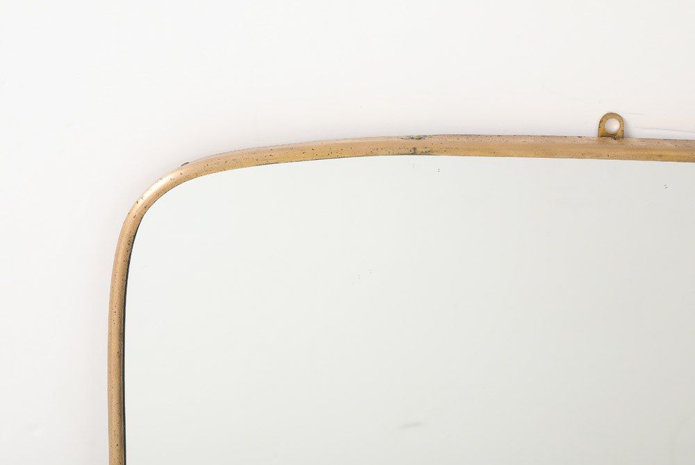 Mid Century Modern Brass Framed Mirror, Italy, 1950’s