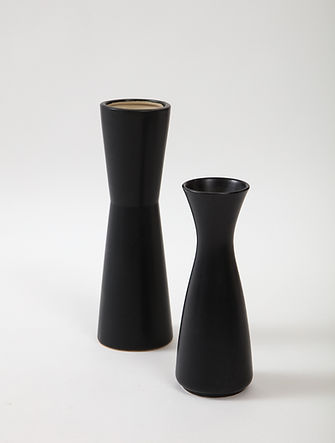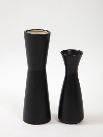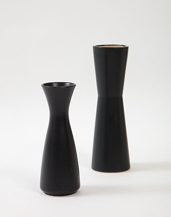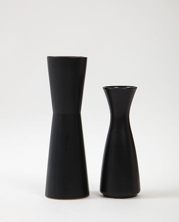 Pair of Modernist Ceramic Matte Black & White Vases, France, 1950’s