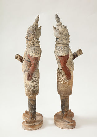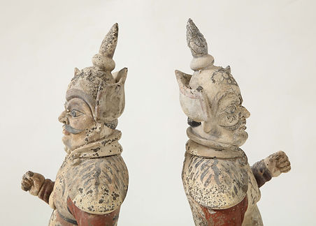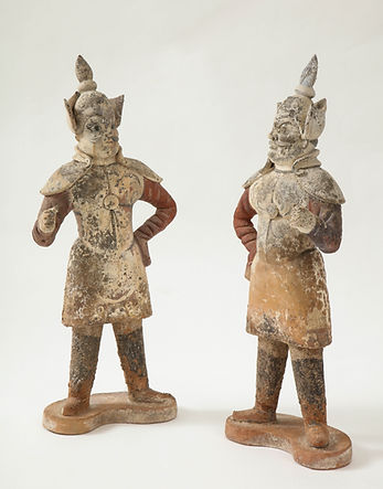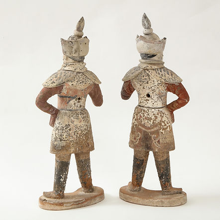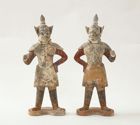 Pair of Tang Dynasty Painted Earthenware Guardians or Soldiers