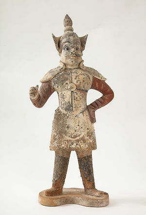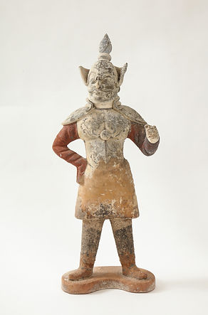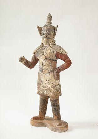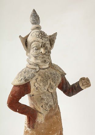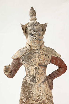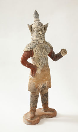 Pair of Tang Dynasty Painted Earthenware Guardians or Soldiers, China, 618-907