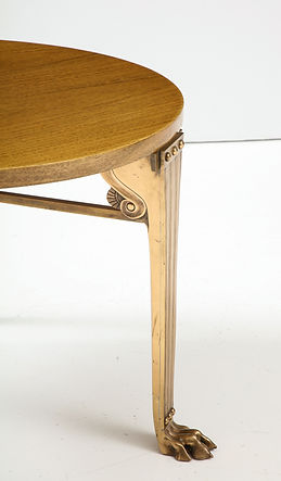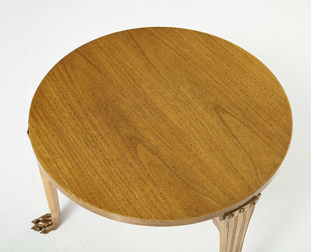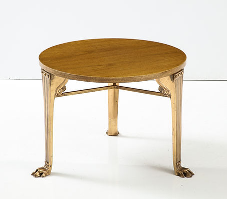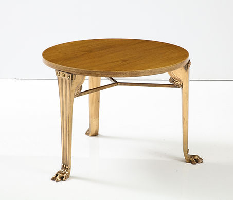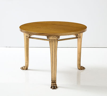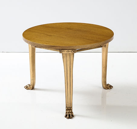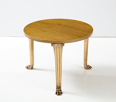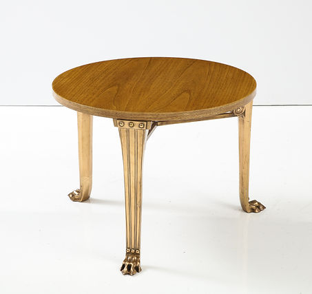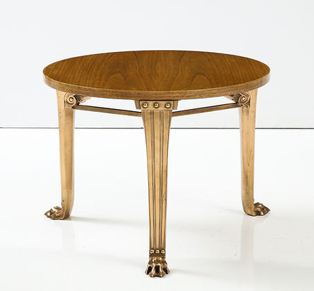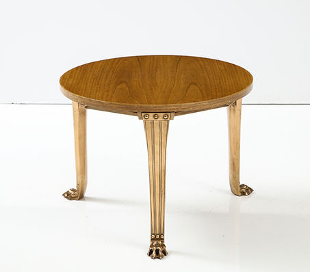 T.H. Robsjohn Gibbings ‘Saridis’ Tripod Walnut Table with Polished Bronze Base
