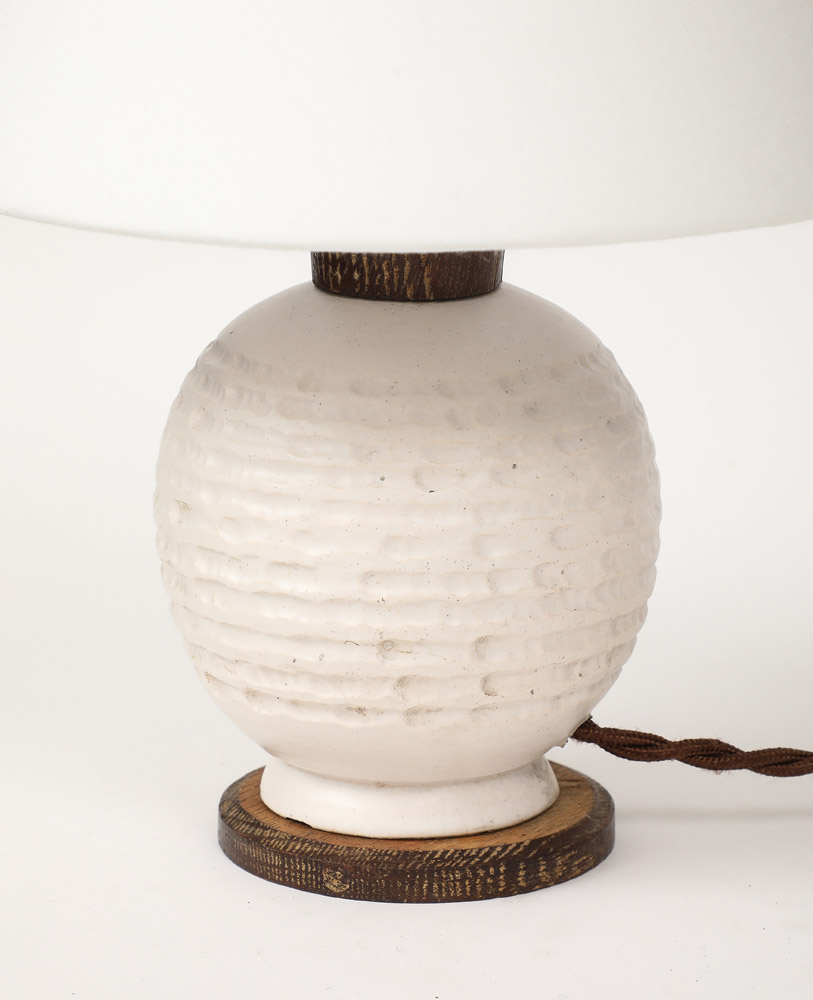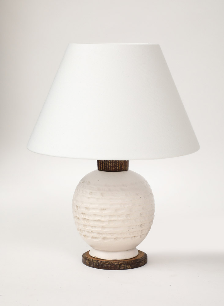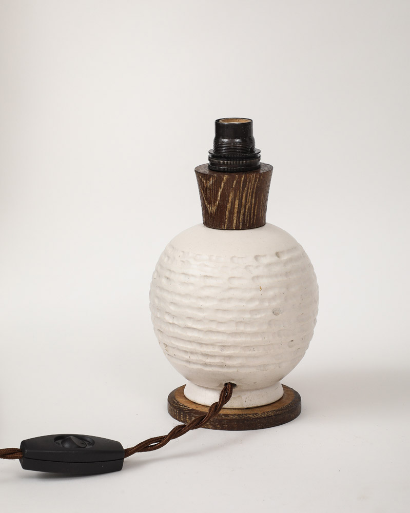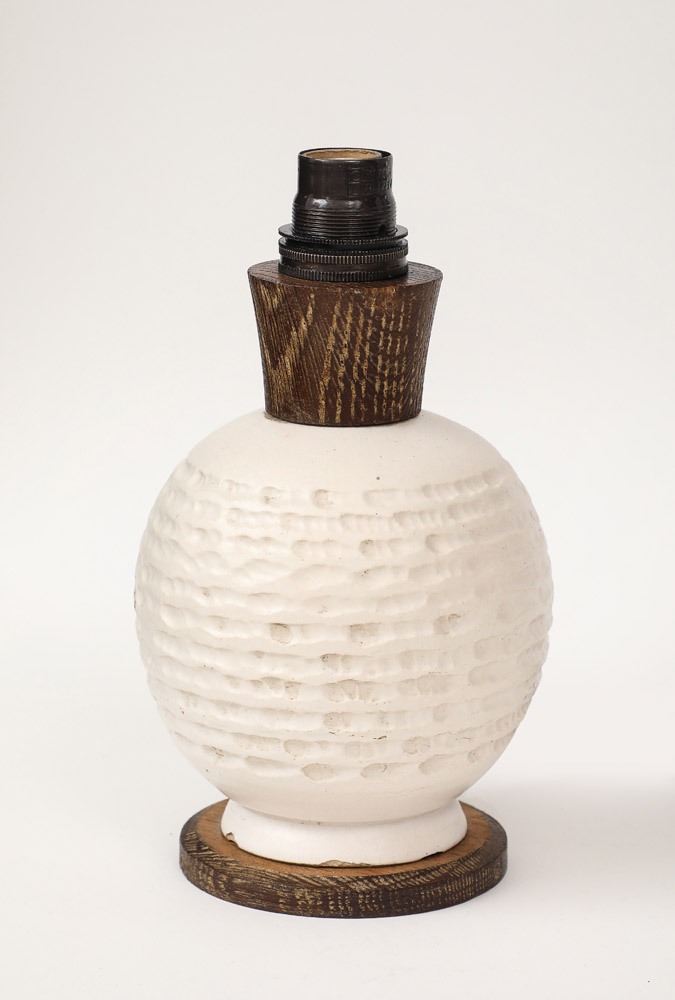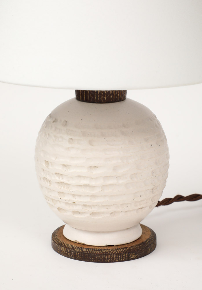 White Ceramic Lamp with Limed Oak & Bronze Hardware, France, c. 1940